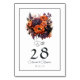 Burnt Orange, Dark Purple & Black Floral Wedding Table Number
