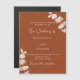 Dark burnt orange background, decorated with eucalyptus stems, sprigs. Personalize and and add your names and the details.