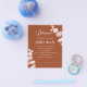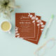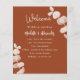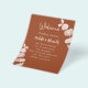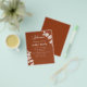 Dark burnt orange background, decorated with eucalyptus stems, sprigs. Personalize and add your names and the details.