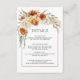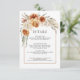 Lovely bohemian burnt orange and off white floral arrangement with pampas grass wedding details card. This design also features an arch and the floral arrangement includes some pampas grass.