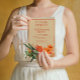Plain white envelopes are included with paper invitations and will come to fit the invitation size you select. If you don’t need the envelopes, you may choose to not receive them by selecting the dropdown below "Envelopes" and choosing "None." If you’d like to have a design on your envelopes, you can browse all of these available envelopes to find the design that complements your Burnt Orange Floral Fall Wedding Invitation.