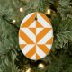 Burnt Orange Geometric Deco Cube Pattern Ceramic Ornament