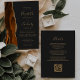Burnt Orange Gold Agate Dark QR Code Wedding Invitation
