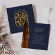 Burnt Orange Gold Agate Navy Wedding QR Code RSVP Enclosure Card
