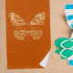 A burnt orange colored background decorated with a large golden butterfly. Personalize and add your name.