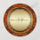 Tribal Batik Style Gold trims with burnt orange and earthy browns, ochre design made into a Round Special Event / Wedding Menu - that would look great placed on the wedding guest plates. Theme : Burnt orange, red, Gold on black, tribal, asian, eastern, arabesque, damask, middle eastern, alternative, Batik, • ♦ • Customizable double sided wedding reception luncheon or dinner menu with other side of card with elegant style layout for bride and groom's names, wedding dates and monogram / initials. Personalize with your special event info. I have added text using the curved style on both sides of this beautiful round menu to make it easy for you. If you don't need it, just delete (leave the space blank).
