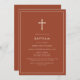 Burnt Orange Gold Typography Cross Frame Baptism Invitation