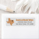 Let them know where you're going with this classy label. Features the state of Texas in a grid pattern with a heart you can move to show where your new house is. Comes in burnt orange, maroon, red, state flag blue, green, purple, orange, black and yellow - most based on state school colors. Matching products available.