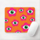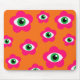 Brighten up your workspace with this bold mouse pad featuring a funky evil eye daisy pattern in striking burnt orange and hot pink tones. The playful, retro-inspired design adds a pop of color and a touch of bohemian charm to your desk while offering a smooth, comfortable surface for everyday use. Perfect for home offices, creative studios, or anyone who loves vibrant, personality-filled accessories.