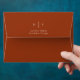 Pumpkin envelope with return address text templates on back flap - by katz_d_zynes -- envelope color/font coordinates with Burnt Orange Maple Leaves Accent all-in-one wedding invitation card >>>> https://www.zazzle.com/burnt_orange_maple_leaves_accent_all_in_one_invitation-256217366681554842