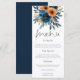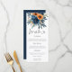 Burnt Orange Navy Blue Florals Wedding. Beautiful flowers border the top, with an elegant script for Menu and easy to personalise the rest of the text to your requirements.