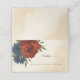 Unique place card featuring romantic burnt orange and navy blue flowers and green leaves.
