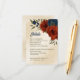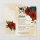 Unique wedding enclosure card featuring romantic burnt orange and navy blue flowers and green leaves.