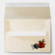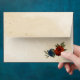 Unique wedding envelope featuring romantic burnt orange and navy blue flowers and green leaves.