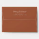 Modern return address envelope in burnt orange, with your name(s) in a handwritten script font, and the address in a plain san serif font. The fonts on both lines can be change to suit your style.