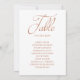 Modern and elegant design printed Terracotta Burnt Orange Calligraphy Script Table Number Seating Chart Cards that can be customized with your text and add each table number card to your cart, one by one. Please click the "Customize it" button and use our design tool to modify this template. Check out the Graphic Art Design store for other products that match this design!