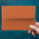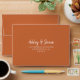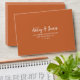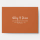 Chic, modern and simple self-addressed RSVP envelope with your names in white elegant handwritten script calligraphy on a burnt orange background. Perfect for your wedding! Simply add your names and address. Exclusively designed for you by Happy Dolphin Studio.