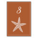 Elegant and simple wedding table card featuring a starfish and simple text design. This design is a unique choice for a modern wedding. Easy to customize with the appropriate table number(s). Click "Customize It" to find more personalization options.