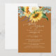 Sunflower bouquet Bridal Shower Invitation. White typography. Modern Design and font. Elegant. Burnt Orange.