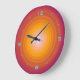 A burnt orange swirl design with modern aqua/ blue numerals .Available in square or round shapes.