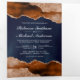Burnt Orange Terracotta Agate Marble Navy Wedding Tri-Fold Invitation