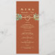 Modern, elegant rustic terracotta burnt orange wedding menu with gold rope heart and eucalyptus greenery.