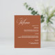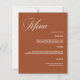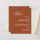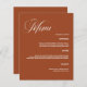 Burnt orange colored background. Personalize and add your names, date and the menu. White text.