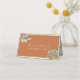 This charming wedding place card features a rustic, botanical design with a warm terracotta burnt orange background. Adorned with gold accents and watercolor greenery, it combines boho elegance with a touch of sophistication. The simple calligraphy script provides space for the guest's name and table number, adding a personal and stylish touch to your special day.