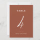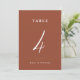 Our stylish burnt orange table number cards are perfect for adding to your tables to help your guests find their places. A beautiful pairing of white calligraphy font with simple and clean text on a burnt orange background makes for an elevated look to complement your stylish event. With double sided details, they're easy & quick to customize yourself with your own names and table numbers.
