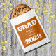 GRAD and your class year in bold white letters with your name and thank you message in the middle on a burnt orange background or any school color. Lots of colors done for you and MATCHING items in our store.