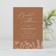 Plain white envelopes are included with paper invitations and will come to fit the invitation size you select. If you don’t need the envelopes, you may choose to not receive them by selecting the dropdown below "Envelopes" and choosing "None." If you’d like to have a design on your envelopes, you can browse all of these available envelopes to find the design that complements your Burnt Orange Wildflower Bridal Shower Invitation.
