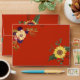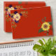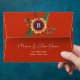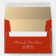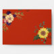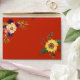 Rustic, elegant, botanical, boho, modern floral burnt orange red wildflower 5x7 envelope for wedding invitations with return address and sunflower monogram initial at the top flap.