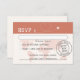 A boarding pass style RSVP card can be a fun and creative way to set the tone for your big day. This type of design can include all the important details as well as any travel information that guests may need to know. The boarding pass style typography along with a world map on the background makes this design especially unique. This design will complement your destination theme/travel theme wedding invitation.