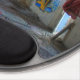 The plastic backing is nice and sturdy. The grippy pads underneath keep the mouse pad where I put it on my table. The pad the mouse sits on is cut well to fit the backing. The wrist pad is perfectly soft, supportive, and thick. I'm left-handed, and this mouse pad works just as well for me as it does for my right-handed friends. I'm the designer of HippieClecticHope products. I'm blown away by how well my intricate fractals turn out on the tangible items in the Zazzle Marketplace. This particular mouse pad ***appears*** like a 3D object... A mathematically-engineered rainbow black opal, inlaid under transparent fabric...
