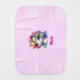 Cute and happy unicorn face and rainbow hair color printed on a Burp Cloths with name