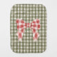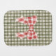 A soft and adorable burp cloth featuring a green pattern with a cute red bow illustration is perfect for your baby's needs.