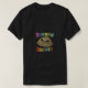 The t-shirt features the text "Burrow Buddies" in a fun, mismatched color palette. Each letter bursts with a different vibrant shade, creating a cheerful and eye-catching design.