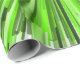 This vibrant design features a pattern of lines of different shades of green bursting outward from a central point.