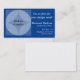 A graphic square with central circle and four quarter circles in the corners, forming a darker diamond shape in center. Three degrees of opacity causes the selected background color (defaults to dark blue) to show in three shades. Personalize with Business name (black within the diamond shape), advertising tag line, and business contact information (white to upper right).