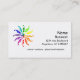 Business card template for visual artists of all kinds. Design in upper left corner is a standard color wheel made with graphic leaves radiating from the center. Personalize with business information.