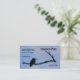 Hummingbird on bare tree branch in silhouette on bottom half of card. Drop shadow of image against the background of a blue sky with faint clouds and rainbow spreading from upper left to lower right. Business name in upper right, phone number in lower right. Name and address in upper left corner and web address below. Background of pale green may be altered.