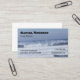 Waves crashing on ocean beach serve as the background for business information. Name and title at top left, address at bottom left and contact numbers (phone and e-mail) in bottom right...