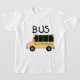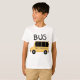 A yellow bus and black kid style text that reads BUS on BUS T-shirts, bodysuits, magnets, tote bags, keychains, cards, stickers, and other bus clothing and gifts.