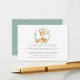 Pop these adorable little cards into your baby shower invitations when requesting that guests bring their gifts unwrapped. Simple bush babies inspired design features a cheeky watercolor kangaroo sitting in a wreath of soft green eucalyptus leaves and wattle flowers. A short poem explains the "display shower" concept and request, and can be changed to suit your needs. Personalize with the guest of honor's name and shower date at the bottom of the card.