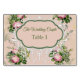 A Victorian Bush Garden Green with Pink Roses and cream - white lace banner number and name cards for each table