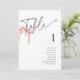 Minimal Pink Bow Table Number Cards for a "She's Tying the Knot" themed Bridal Shower.
