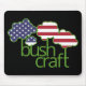 Bushcraft (bush craft) is term for wilderness skills. This product features the flag of the United States. This is displayed as a canopy of tress. The text is written below, in green. Some of the letters form the trunks of the trees.