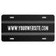This promotional license plate is black. There's also white display text that you can replace with custom text such as your web address.