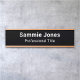 Personalize our changeable door name plate with recipient name, job title, or other custom text. You can customize the black background color. Available in other metal colors in two sizes – standard 2 inch x 8 inch or long 2 inch x 10 inch – and in two styles – as a desk name plate or a door name plate. No minimum order quantity and no setup fee.
