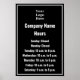 Business Black & White Logo Hours of Operation Poster